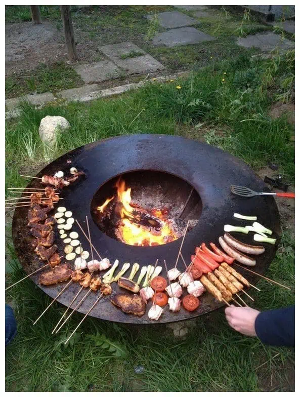 Now these three are stretching the firepit name but technically they are. I really like them. The first guy to make these used a huge plough plate to be the top as it was convex and the fats ran off. I really like the one on the left. Being able to throw a flat bread on top would be grand. I also like the idea of having enough space to cook for everyone at once. Very cool.