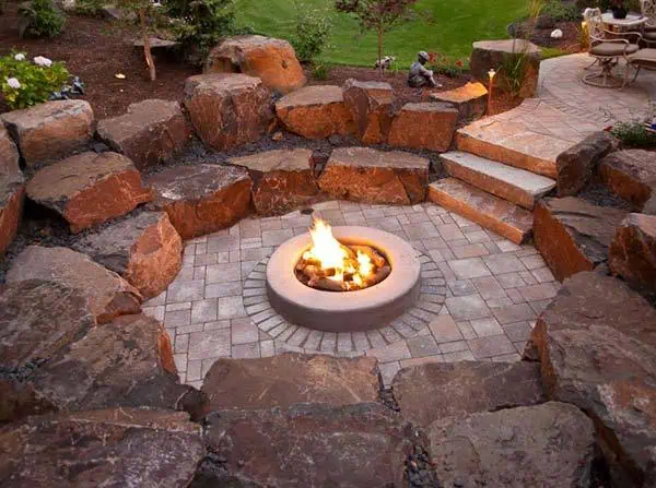 Well we can use this idea to build a great private outdoor space for our family and friends to come around and be together. In the picture below, the landscaper has used large rocks to form the enclosure but you could use pavers or even bricks. If you have a natural curve in the land use that or otherwise just dig down and create a built in fire pit below the surface.