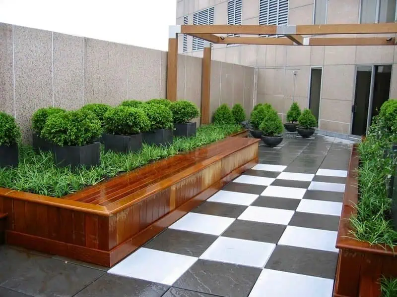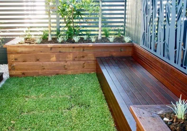 I particularly like the planter box design where you have a planter box on one side and a planter box on the other, then a seat built between them. It is a great use of space and still brings the greenery into the area you are using.